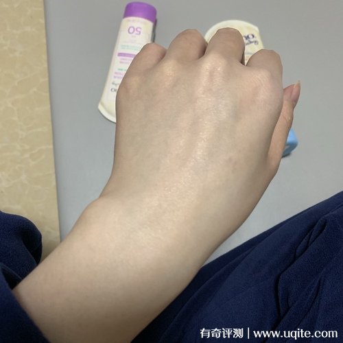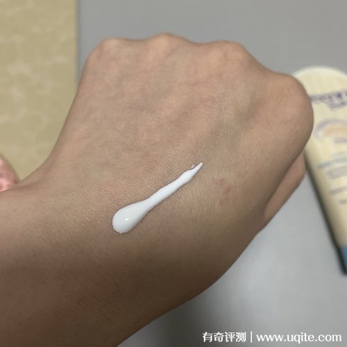 這款防曬是一款純物理防曬,沒有添加任何的化學試劑,一般的物理防曬都會有點增白的效果,但它上臉之后顏色還蠻自然,不假白,就像自己本身的皮膚一樣。