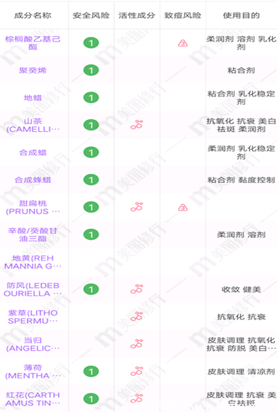 另外,我還專門去查了這款青蛙王子紫草膏的成分表,它里面是不添加任何防腐劑和香精成分的,而且成分溫和度很高,所以給孩子使用就還挺放心的。