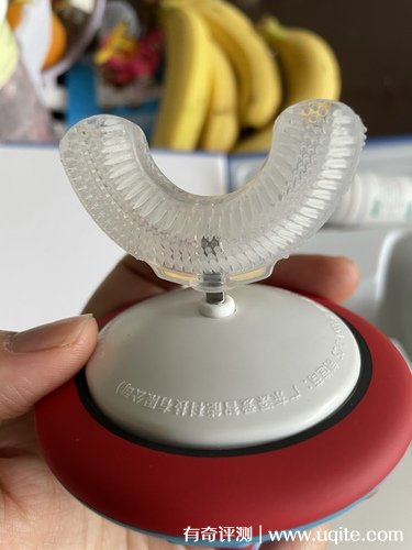 而且我仔細(xì)觀察了一下,這款深愛兒童U型電動牙刷的刷頭還挺柔軟的,而且覆蓋面是六維的設(shè)計,可以非常完美的照顧到每一顆牙齒。平時刷牙,只需要輕輕咬住這個U型牙刷頭就可以了。