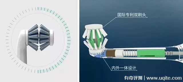 在刷牙時,通過咬合式的刷牙方式,使刷毛外圈清潔上下牙齒內(nèi)外兩側(cè),刷毛內(nèi)圈清潔牙齒頂面,相比于傳統(tǒng)只能清潔單面的刷牙方式,其清潔效率更高,是普通電動牙刷清潔速度的6倍之多。