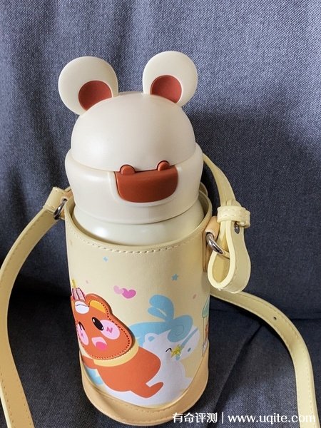 YY保溫杯我是在雪梨直播間種草的,因?yàn)榭刺貏e可愛,還有背帶杯套,女兒也喜歡這種類型,就買了個(gè)。它配套除了吸管蓋,還有個(gè)按壓的,搭配小杯子類型的蓋子。不過水杯本身比較大,孩子目前用著還比較費(fèi)力,所以習(xí)慣用吸管頭。
