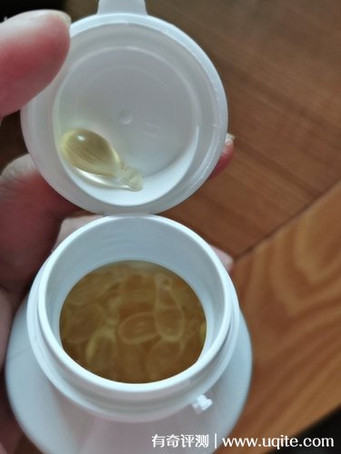 這款澳樂乳DHA藻油膠囊的形狀還挺可愛的,像一條圓滾滾的小魚,而且整粒魚油膠囊是透明的淡黃色,看著有點(diǎn)晶瑩剔透的樣子,還蠻不錯(cuò)的。