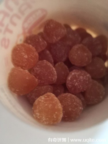 SmartyPants維生素軟糖打開以后能聞到淡淡的水果香味,然后它的質地就和QQ糖差不多,我嘗了一粒,味道還挺不錯的,而且不粘牙,真的就和吃水果軟糖差不多,所以孩子吃起來也一點不排斥。