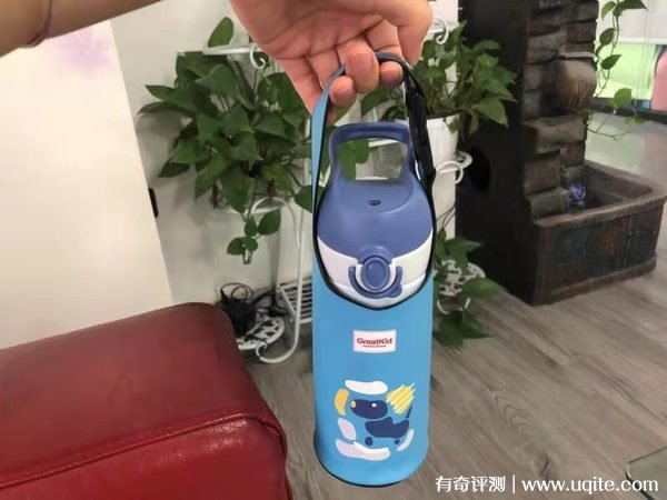 冠迪保溫杯實物做工不錯,沒有瑕疵,蓋子很嚴實,不漏水,彈跳蓋,是小孩子喜歡的,打開也方便。內里光滑,沒有異味,用著放心,就用開水泡了泡就用了。本身蓋子上有提手,平時提著也輕松,還有個杯套,就更不怕磕壞。它能識別溫度的就是那個小海星形狀的東西,確實有用,介紹能出水的溫度是50度,小孩子小口喝反正是不燙的。