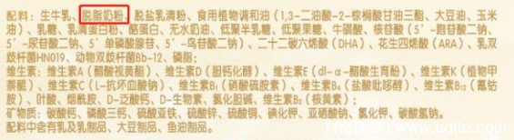 其次大家還要學(xué)會看配方表,配方表中只要含有脫脂奶粉(也就是我們常說的大包粉),就是牛乳脂肪球。而牛乳脂肪球相對于初生寶寶來說直徑會比較大,不是很好吸收,所以要盡量避免剛出生的寶寶和這款奶粉。