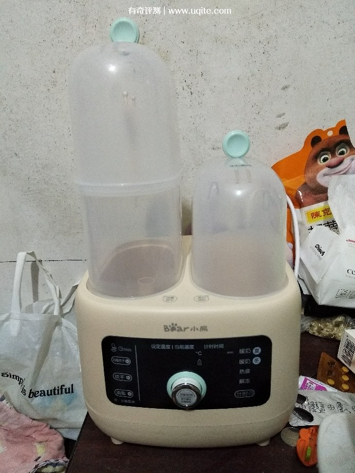 優(yōu)點:小熊奶瓶消毒器外觀好看,體積不大,可以隨意放,不止可以消毒奶瓶,還可以消毒玩具,另外一格可以解凍,寶寶做輔食的時候特方便,不用前一天晚上就把凍肉拿出來解凍,直接放進去即可解凍,輔食一餐吃不完,下餐可以放進去熱食,還是很方便的。