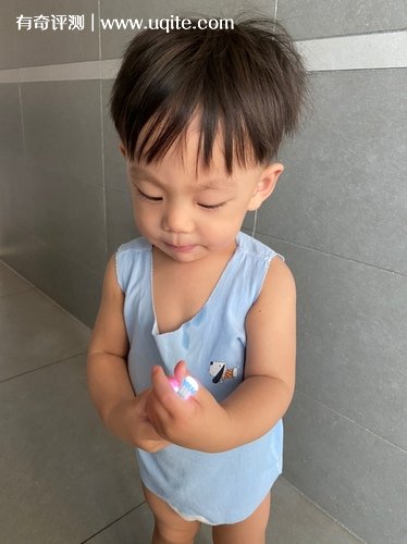 babysmile電動牙刷比較獨特的是它有l(wèi)ed燈光,能幫助看清寶寶口腔情況。第一下打開是各種顏色的燈光變換,我感覺有點刺眼,但是寶寶好像沒啥感覺,甚至喜歡捧著牙刷晃來晃去。(上周刷微博大概猜到了原因,說是小孩眼里的世界比較模糊,是隨著年齡增長才看得越來越清楚的,他應(yīng)該是不覺得刺眼)