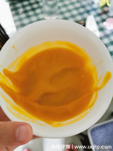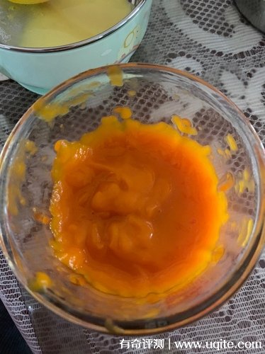 這是加水打的南瓜泥,可以看到效果是非常細(xì)膩的,而且速度非??欤瑳]有細(xì)算多少秒就打好了,不愧是螺旋六刀頭,效果確實(shí)不是一般雙刀頭能夠相比的。