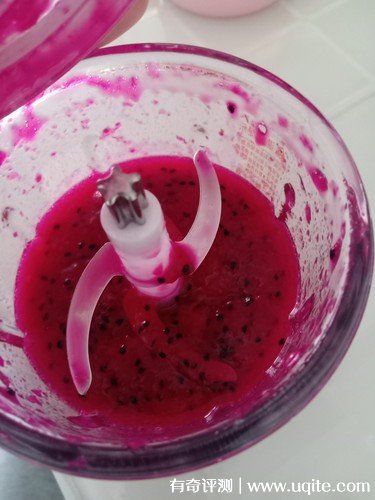 打火龍果也是非??欤m然里面的黑籽沒有完全切碎,但估計(jì)沒有哪個(gè)輔食機(jī)能夠做到完全碾碎的,這已經(jīng)有部分切斷已經(jīng)很不容易了,說明浦利頓輔食機(jī)刀頭的鋒利度和轉(zhuǎn)速是達(dá)到的,只是東西太小了。