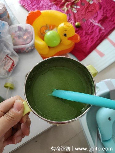 當(dāng)然一般偏硬的都需要多打一會(huì),軟一點(diǎn)的就比較好打。從玻璃杯體就可以大約看到效果,可以自由調(diào)整粗細(xì),一般剛添加輔食的寶寶就需要打得細(xì)膩一點(diǎn),后面再慢慢變粗一點(diǎn),畢竟得讓寶寶慢慢適應(yīng)。