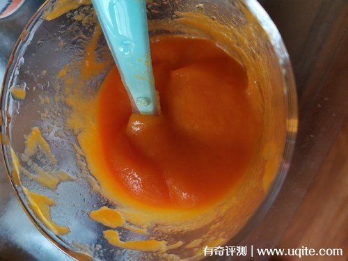 當(dāng)然打出來夠不夠細(xì),還得再看看,畢竟二寶需要的輔食是非常細(xì)膩接近流食的那種。打了偏硬的胡蘿卜,切成了小塊,適當(dāng)加點水,打出來的效果確實很不錯,胡蘿卜都可以打成這么細(xì)膩,大多果蔬都不成問題了。