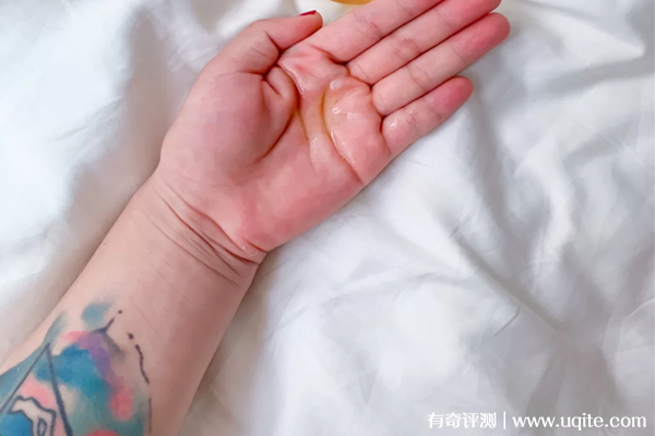 產(chǎn)品的包裝是比較簡(jiǎn)約大方的類型,拆開(kāi)包裝盒,里面撫觸油的瓶子是透明的,可以清楚的看到里面的質(zhì)地。撫觸油倒在手上是透明的淡黃色,油性質(zhì)地,聞著有一點(diǎn)淡淡的香味,看著還不錯(cuò)的樣子。