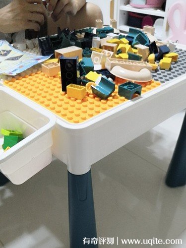 每次玩都還要找一個(gè)人陪她一起,而且在玩的過程中,她自己還很有見解。積木桌有兩個(gè)收納掛籃,可以用于收納,而且桌面是可以拿起來的,下面也有收納空間,平時(shí)不用還可以當(dāng)小桌子,用來寫字畫畫。