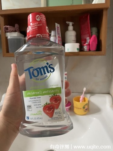 toms湯姆小屋漱口水的味道還蠻好聞的,是一股草莓味,我沒(méi)有聞到什么刺激性的味道,我家孩子用完之后都說(shuō)味道很好,酸酸甜甜的,不刺激,比牙膏用著要舒服很多。