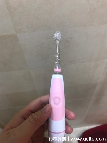 這款電動(dòng)牙刷的刷頭是那種圓頭的,剛好適合寶寶的牙齒,同時(shí)也可以避免戳傷口腔,保證使用的安全,刷毛的模式很柔軟,應(yīng)該使用的是美國杜邦刷毛無疑,使用方法也很簡單,是那種一鍵式的,剛拿回來的時(shí)候,孩子就開始用了。