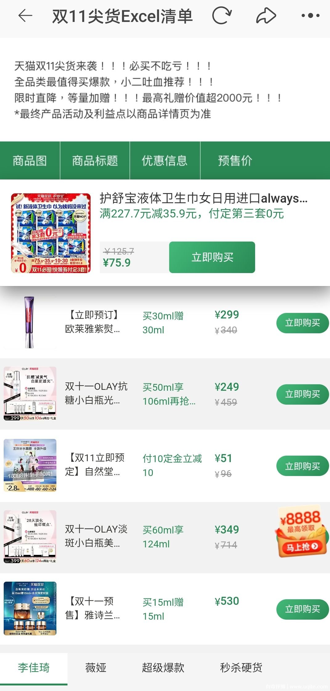官方整理的雙十一尖貨清單:https://s.click.taobao.com/xa1a4fu(包含李佳琦、薇婭產(chǎn)品信息)