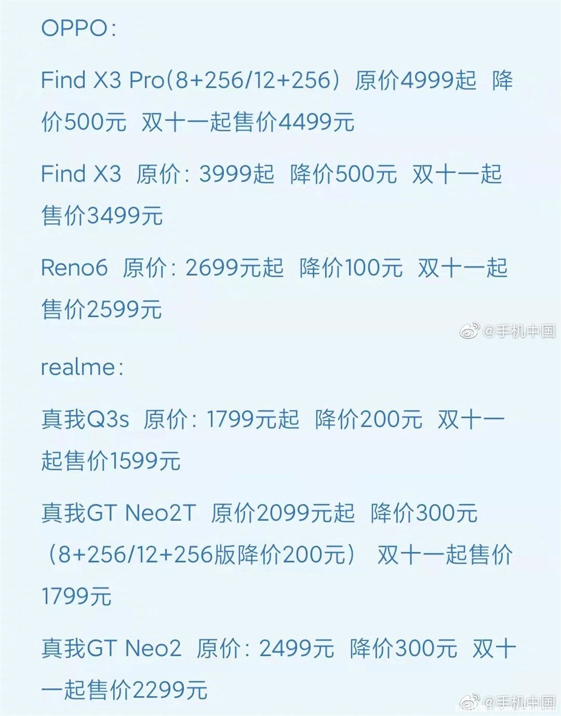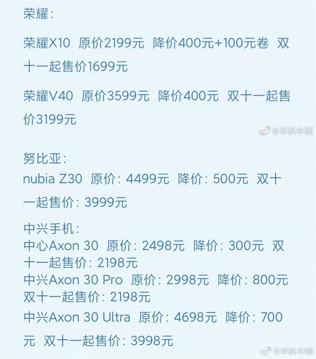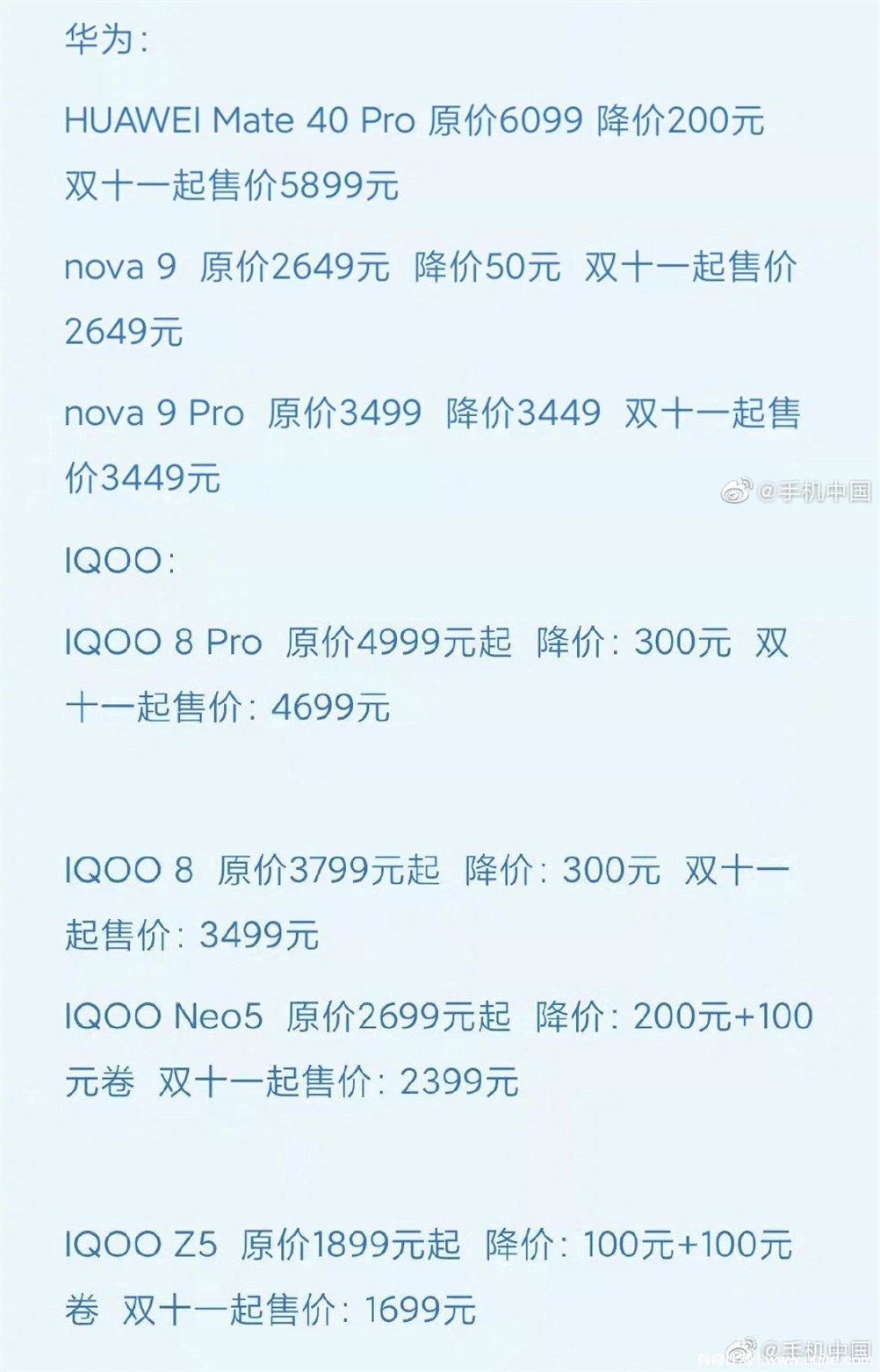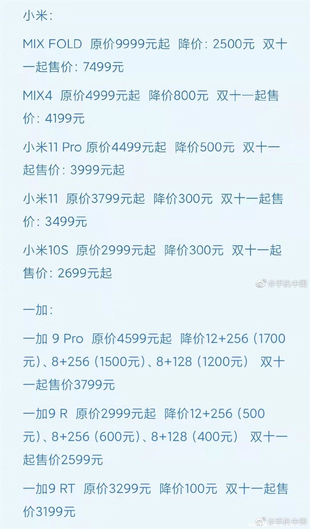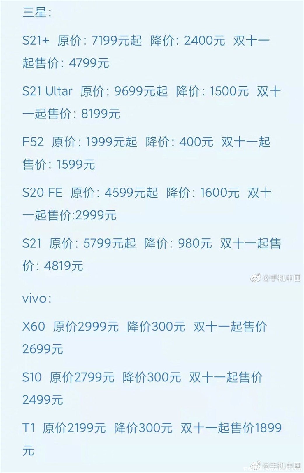 2021年雙十一大牌手機(jī)優(yōu)惠明細(xì)