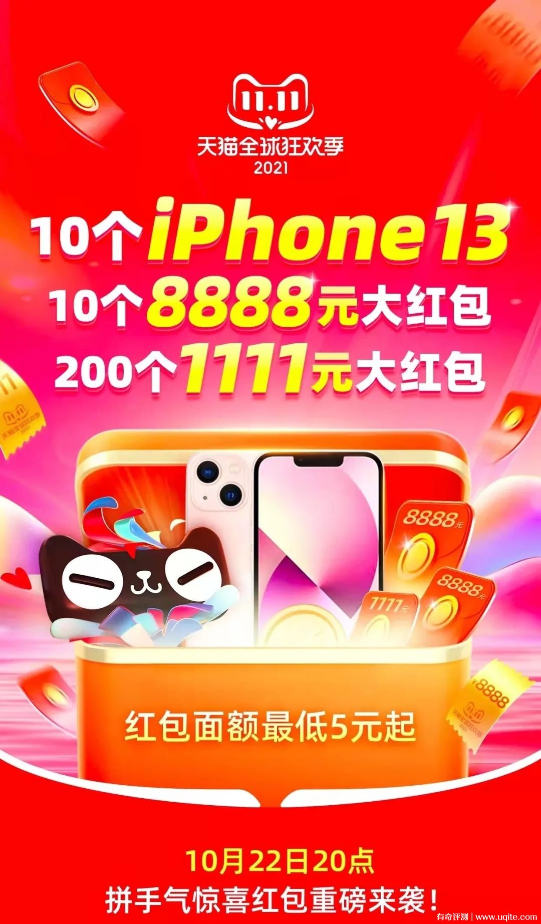 要說紅包,每年雙十一最大的紅包莫過于超級(jí)紅包了,預(yù)售期間都可領(lǐng)取,每日一次,最高可領(lǐng)8888元。今年還推出了超級(jí)紅包加碼紅包,在10月20日、10月30日、11月1日、11月4日、11月8日、11月9日領(lǐng)取,紅包最高1111元,每天可領(lǐng)3次。雖然紅包金額一般不大,但每天花個(gè)幾秒鐘的時(shí)間,說不定也會(huì)搶到大金額的呢,去年小編最高搶到的一個(gè)就有六十多。使用時(shí)間也與正式售賣時(shí)間一致,在11.1號(hào)-11.3號(hào)以及11.11號(hào)。