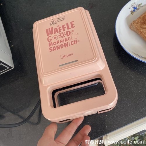 產(chǎn)品到手后質(zhì)量還挺好的,做工和細(xì)節(jié)處理的都很不錯(cuò),體積也很小巧,平時(shí)放在家里一點(diǎn)也不占地方。這款美的三明治機(jī)的烤盤是可以拆卸下來的,這樣清洗起來就很方便,并且還可替換其它的烤盤使用。