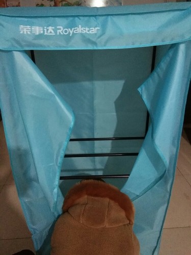 冬天天氣冷,洗完洗衣服之后,總是不能干,所以就買了這款榮事達干衣機,價格到不貴,原價要100多元,領完券后只需70多元。拿到后以為買錯了呢,看了才知道它是那種組裝的,幾分鐘就可以安裝好,外形有點像是一個衣柜,不過重量很輕,移動起立很方便。