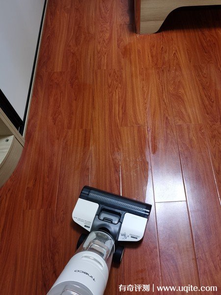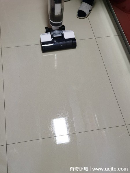 它工作過(guò)程中聲音不大,可以接受。吸力方面蠻不錯(cuò)的,有時(shí)候孩子打翻的菜和粥,都可以吸起來(lái)。還有一點(diǎn)我很滿意的就是,它拖完后水漬不多,不容易造成地板滑,也不容易再踩臟,通風(fēng)情況下,幾分鐘就干了。