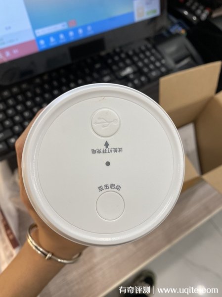 olayks榨汁杯實物顏值挺耐看的,做工沒問題,杯子里面也沒啥異味。它是兩葉刀片設計,刀片很硬很鋒利的感覺。操作很簡單,雙擊后倒放杯子就能榨汁,充電口也在蓋子上。