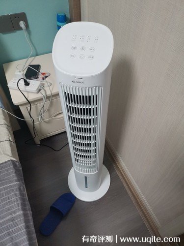 格力空調(diào)扇的底部后方是有一個水箱的,使用時,可以在里面放水和冰塊,這樣吹出來的風會更加的涼快,而且水箱的水位是可以從外面看到的,它有做一個水位線,就很方便。這款格力空調(diào)扇的風力和風速都很不錯,就算是坐在一兩米外的地方也可以感受到。