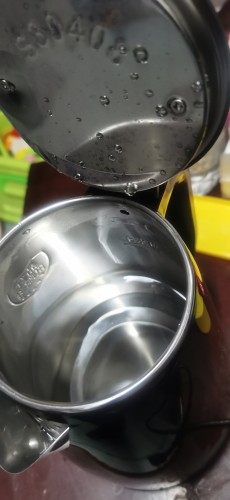 它的容量達(dá)到了1.8升,比以前的水壺容量要大,家庭使用已經(jīng)足夠了。它的內(nèi)膽是不銹鋼的,具有耐腐蝕、抗高壓的特點(diǎn)。一鍵式燒水,很簡(jiǎn)單。這個(gè)壺開始燒的時(shí)候沒有什么噪音,這點(diǎn)我很喜歡,因?yàn)橹暗乃畨孛看螣臅r(shí)候,噪音特別大,這個(gè)還好。