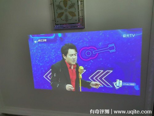 使用時,這款微麥投影儀的投屏效果就挺好的,像陰天拉個窗簾窩在家里追劇就很爽,而且只要是純色背景板怎么投屏都可以,像我就在天花板上投射過,效果就和水平投屏差不多。