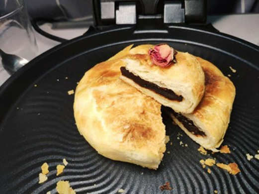 3、放入需要烤制的食品后蓋好蓋,當(dāng)電餅鐺四周熱氣變小時(shí),表明食物已熟,可以打開(kāi)蓋子。