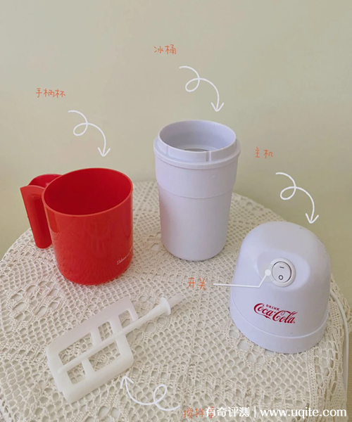 我入手的這款可口可樂冰淇淋機(jī)是家用小型版的,所以從體積上來看它就挺小巧的,有點像便攜水杯的設(shè)計,它是一共是一個操作鍵,所以使用起來就挺簡單的,沒有復(fù)雜的操作手法,這點對于手殘黨的我來說,就還挺便利的。