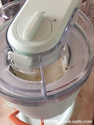 這款悠伴冰淇淋機(jī)體積不大,但是用于制作冰淇淋的冰桶是1L的,所以就算是一大家子,使用這臺悠伴冰淇淋機(jī)也是完全夠用的。機(jī)器的操作其實很簡單,基本上就一個旋轉(zhuǎn)的攪拌按鍵。