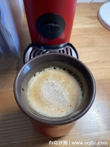 因?yàn)椴挥醚心ィ钥Х葯C(jī)的出咖啡速度就還挺快的,基本上一分鐘不到就能做好一杯,并且口感不比外面買的味道差,就還挺不錯(cuò)的。