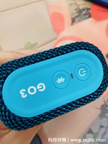 JBL音響的側(cè)邊是開關(guān)按鍵以及藍(lán)牙按鍵的設(shè)計(jì),在使用時(shí),它的連接速度就還挺快、挺靈敏的。而且放歌時(shí),它的音質(zhì)很清晰,低音播放表現(xiàn)很強(qiáng)烈,聽著就挺帶感的。