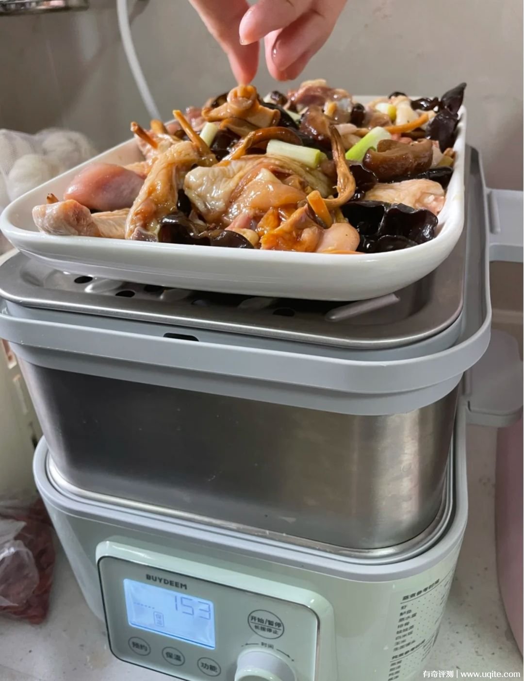我和老公都不是很會做飯的,但是新家又不能不備點家電,每天晚上也還是要做點東西湊合吃。北鼎電燉鍋我是在抖音上刷到的,當(dāng)時有個博主用,看她米飯、湯和菜全都用電燉鍋搞定了,很方便的樣子,就心動了,和老公商量之后,買了雙層款。
