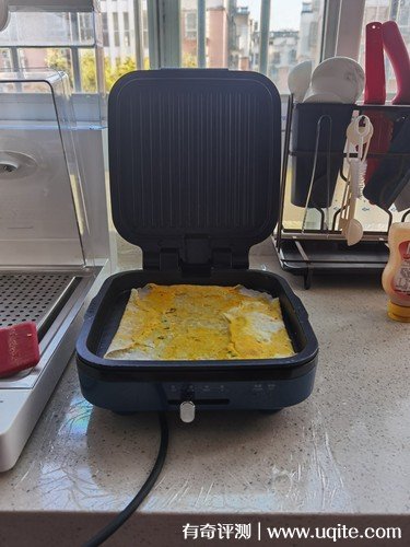 剛到手的時候我就給自己的做了一個手抓餅,它的烤盤雖然是不粘鍋的,但我還是刷了一點油,它受熱還挺均勻的,一點焦糊的現(xiàn)象都沒有,做出來之后賣相很不錯。