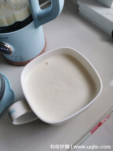 西屋的這款破壁機磨豆?jié){還挺細膩的,基本上沒有什么很明顯的殘渣,豆?jié){入口味道很香醇,喝起來就和外面買的一樣。