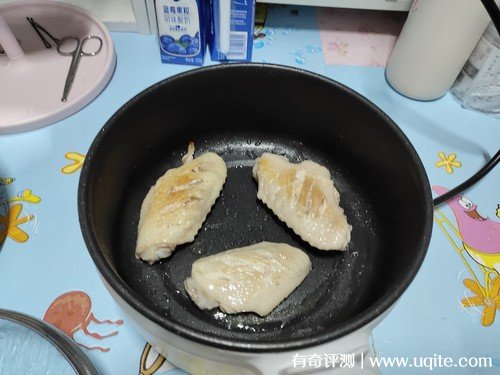 除了煮面條以外,這款pue電煮鍋煎東西也挺不錯的,它的受熱度很均勻,而且不易出現(xiàn)焦糊情況,像我平常做雞翅就比較喜歡用它,就還挺不錯的。