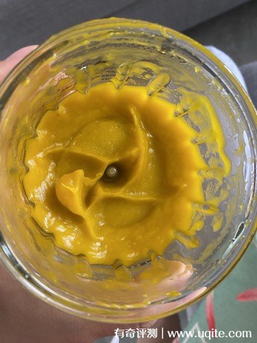 使用時,這款小貝熊輔食機是一鍵啟動式的設計,所以操作方式就還挺簡單的。而且在攪拌事物時,速度很快,像這個南瓜泥,基本上兩分鐘這樣就弄好了。