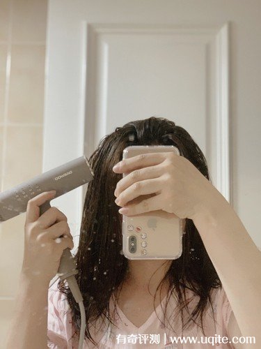 雖然我的頭發(fā)不算長,但是它很厚,以前洗完頭基本上要吹十幾分鐘才能變成半干,但是這款大宇吹風(fēng)機(jī)的干發(fā)速度是真的很快,基本上三分左右,就能明顯感覺,發(fā)質(zhì)已經(jīng)不滴水了,然后再吹三到四分鐘就基本上完全干了,所以速度就真的挺驚人的。