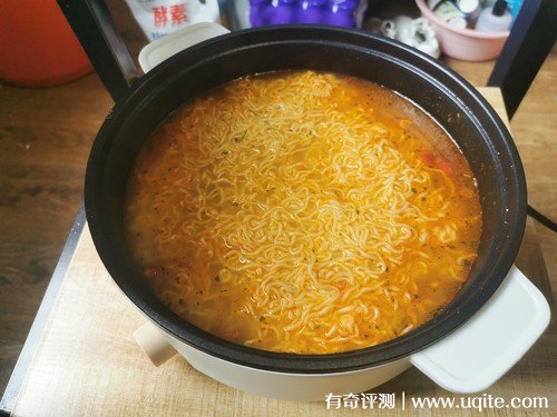 美的電煮鍋的升溫速度也挺快的,打開十幾秒之后就可以感受到熱度了,我一般用它來煮螺螄粉和泡面比較多,水加進去,不到十分鐘就沸騰了,煮螺螄粉的話,不到十五分鐘就可以煮好了。