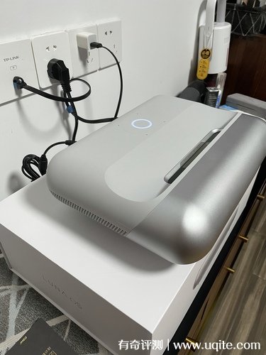 這款堅果投影儀到手質(zhì)量和做工還是挺不錯的,而且拿在手上也不重,平常搬動起來就還挺方便的。我其實看中這款投影儀很重要的一個原因就是它可以近距離投射,這樣就不用擔(dān)心走來走去出現(xiàn)遮擋屏幕的情況。