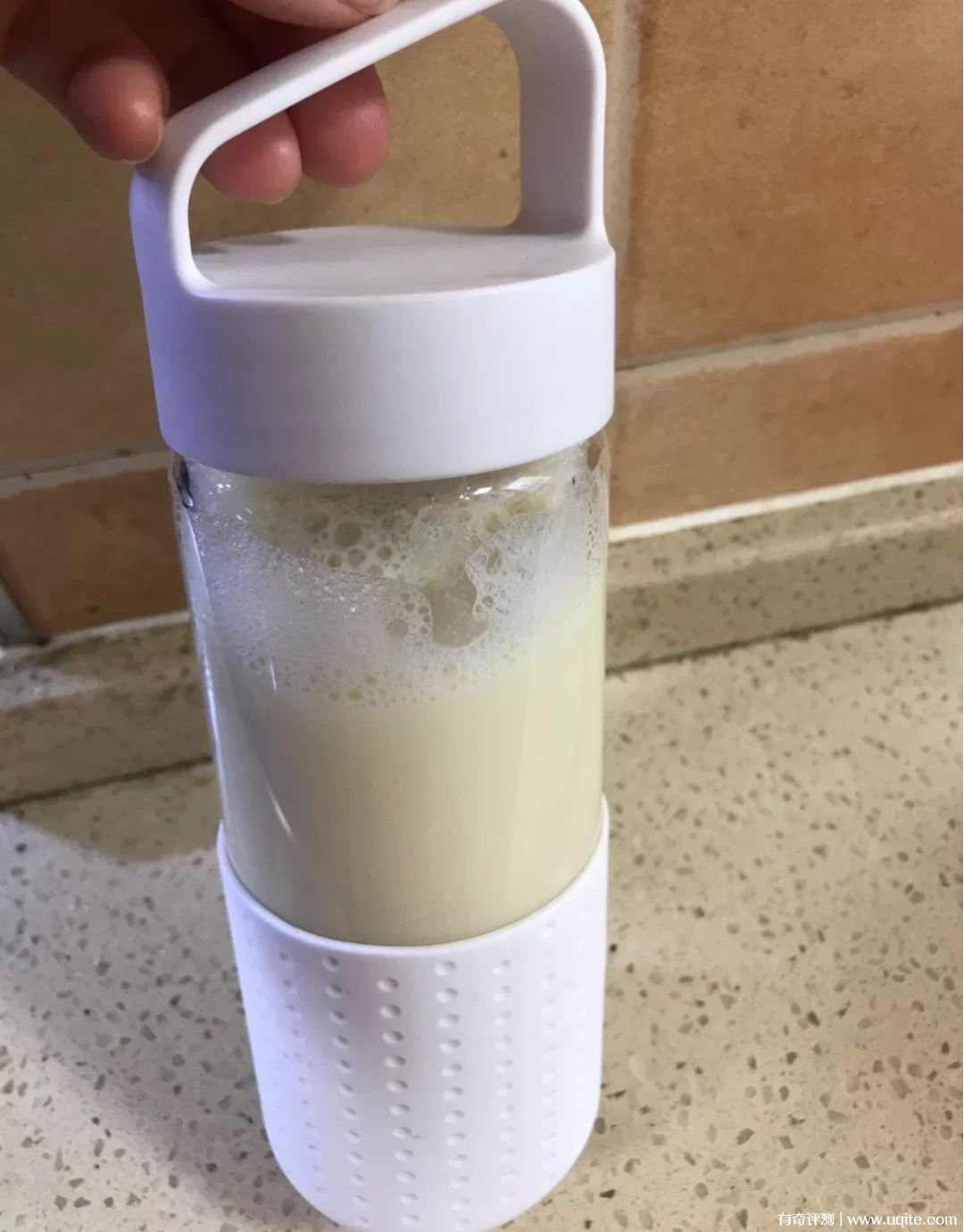 它成品很細(xì)膩,打西瓜汁的時(shí)候,西瓜籽都粉碎了,直接吞沒(méi)問(wèn)題。豆?jié){口感和外面買的沒(méi)區(qū)別,不需要過(guò)濾,水放得少的話,有點(diǎn)綿綿的(感覺(jué)打綠豆沙會(huì)很不錯(cuò),有空準(zhǔn)備試試),不卡嗓子,家里小孩子更喜歡水少的,我一般自己喝的話水放多點(diǎn)。