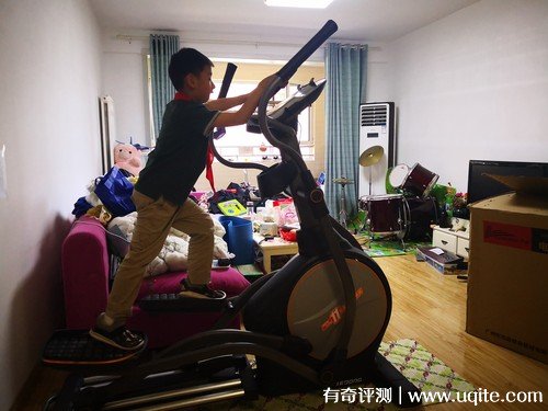 買這款杰森橢圓機(jī)已經(jīng)快兩個(gè)月了,它的價(jià)格并不便宜,但看了它的飛輪重量達(dá)12斤,比較適合我這種已健身10年的“肌肉男”。杰森橢圓機(jī)給我的第一眼感覺還是很不錯(cuò)的,精鋼制成的機(jī)身骨架、時(shí)尚的黑色烤漆層,前置飛輪設(shè)計(jì),使得它更加的簡單易學(xué),雖然重量比較重,但它的底部有滾輪,所以可以隨意的移動(dòng),不是問題。下圖是我兒子假模假樣的玩杰森橢圓機(jī)。