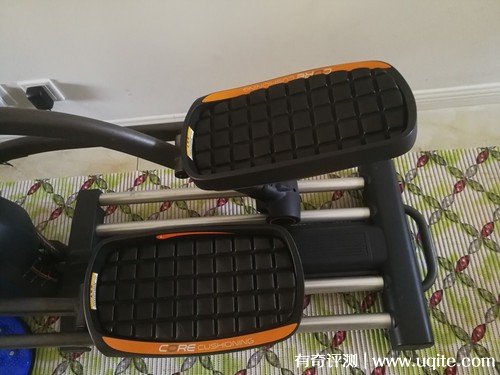 可以看到杰森橢圓機(jī)的四個(gè)扶手都是有防滑設(shè)計(jì)的,同時(shí)腳踏板也經(jīng)過了防滑和加寬的處理,滿足不同人的運(yùn)動(dòng)需求是可以的。站在上面之后,腳踏板之間的間距,和我們正常行走的幅度差不多,想必它的運(yùn)功體驗(yàn)感是不錯(cuò)的,寬大的高清顯示屏,每個(gè)按鍵都有標(biāo)識(shí),使用還是比較簡單的。