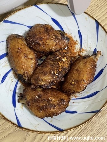 因為聽說是可做無油的食品,所以我就烤了雞翅,放進去時真的是一滴油都沒有抹,而且就放了點干料,然后烤了二十來分鐘,然后出來的烤翅真的是油脂很少,吃起來完全不膩,肉質(zhì)也不材,感覺減肥中的人也可以多吃幾個,完全不發(fā)胖的那種。