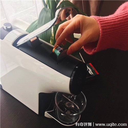 制作前需要選擇自己喜愛的咖啡膠囊口味,然后提起手柄,把咖啡膠囊輕輕放入心想咖啡機的萃取室里。