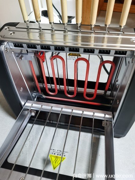法詩(shī)緹電燒烤爐操作蠻方便的,烤串放進(jìn)去讓它自己旋轉(zhuǎn)就好,玻璃門(mén)可以看到具體狀態(tài),好了就拿出來(lái)??緺t中間是發(fā)熱管,打開(kāi)后升溫很快,會(huì)慢慢變紅。過(guò)高溫會(huì)自動(dòng)停止,溫度降了后一會(huì)又開(kāi),比較安全。