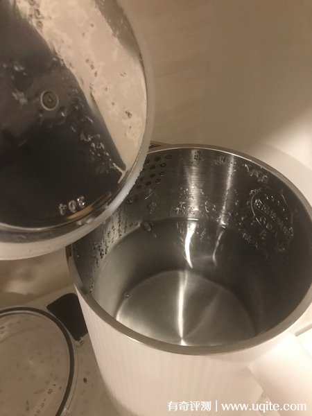 它內壁很光滑,有水位線,壺嘴附近是鏤空洞設計,能稍微擋住些東西,平時不怎么擔心有東西進去。使用過程中聲音不算大,可以接受,主要也和水量有關,如果水少,聲音就會更小。