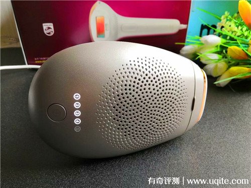 飛利浦脈沖光脫毛儀脫毛的按鈕在手持位置凹陷處,輕觸就能輕松溫和去除毛發(fā),但是這個(gè)得等就緒燈亮起時(shí)再按,之后脈沖燈頭處紅光一閃,心里特有成就感,有著一直清除掉多余東西的快感。密集的圓孔同樣也是幫助散熱。飛利浦脈沖光脫毛儀弧形大頭處銀色的一圈是就緒燈,每次使用得等就緒燈亮了之后才可以按脈沖按鈕。把手上印有商品的詳細(xì)信息---品名、型號(hào)、產(chǎn)地、產(chǎn)品編碼、功率、電壓、生產(chǎn)日期、認(rèn)證標(biāo)識(shí)等,非常正規(guī)完善。